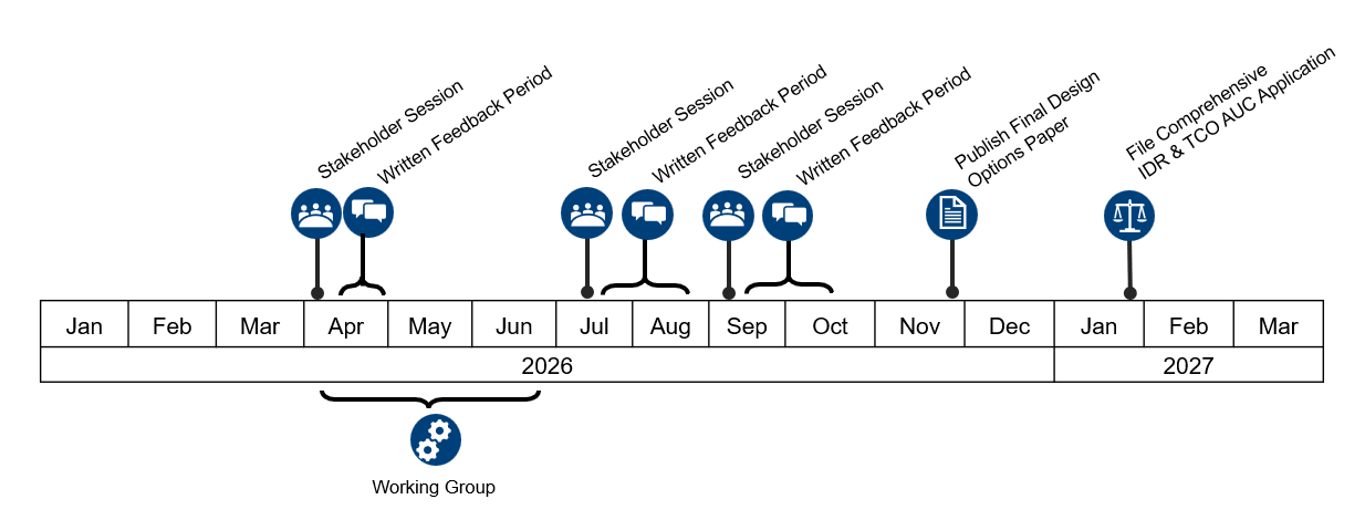 Pre-application/application preparation: AESO will release Terms & Conditions blacklines and request stakeholder feedback prior to drafting its AUC application. Ongoing check-ins and updates will continue with the Phase 3 overlap to ensure clear communication on the preferred options